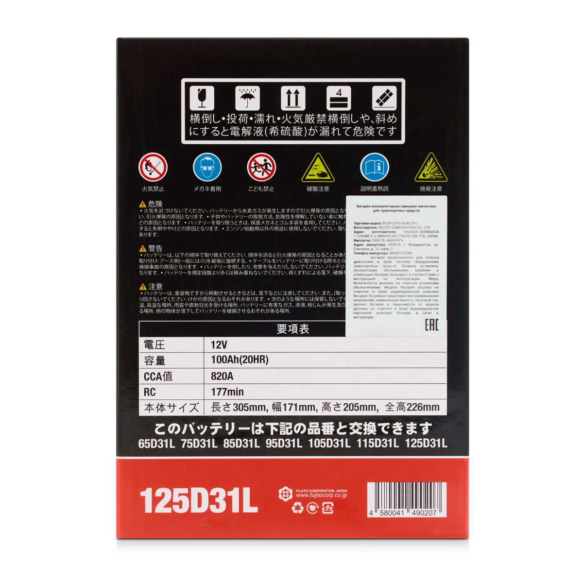 Аккумуляторная батарея FQ 100Ah 820A 125D31L (305x171x205/226)