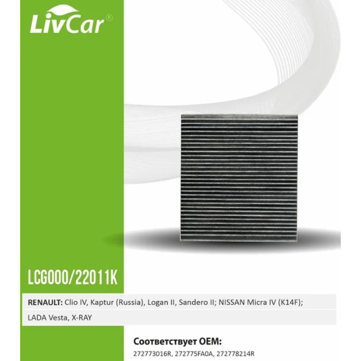 Фильтр салонный LIVCAR LCG000/22011K (CU22011) угольный ВАЗ Vesta/X-RAY