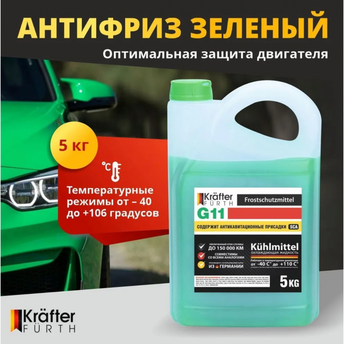 Антифриз KRAFTER G11 зеленый 5кг | Антифриз Уценка